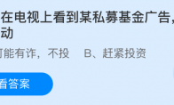 小明在电视上看到某私募基金广告,非常心动?这是支付宝蚂蚁庄园小鸡答题5月16日题目,支付宝小鸡答题是大家非常喜欢的活动,大家获取饲料就可以喂养小鸡领取更多的蛋去帮助更多的人了!今日
