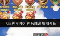 巨神军师神兵抽满规则是什么?巨神军师神兵抽满规则详解,是很多玩家所关注的点,毕竟在巨神军师游戏当中,它会涉及到神兵系统,而神兵系统能够帮助玩家提升武将的战力。不过对于大部分玩家来说