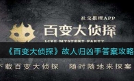 百变大侦探APP是一款多人在线、实时语音、角色扮演的社交平台,游戏中剧本杀:故人归凶手是谁呢?下面是3DM小编给大家带来的《百变大侦探》故人归凶手答案攻略一览,感兴趣的小伙伴们一起