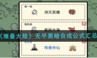 在堆叠大陆游戏中第六章无尽黑暗上线了,相信很多玩家还不清楚新增加的道具该怎么合成。接下来就让小编给大家带来《堆叠大陆》无尽黑暗合成公式汇总,感兴趣的小伙伴们一起来看看吧。 《堆叠大