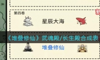 在抖音小游戏堆叠修仙中很多小伙伴想知道,武魂殿/长生殿怎么合成呢?接下来就让小编给大家带来《堆叠修仙》武魂殿/长生殿合成表一览,感兴趣的小伙伴们一起来看看吧,希望可以帮助到大家。