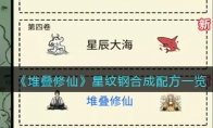 在抖音小游戏堆叠修仙游戏中星纹钢怎么合成/获得,配方是什么呢?接下来就让小编给大家带来《堆叠修仙》星纹钢合成配方一览,感兴趣的小伙伴们一起来看看吧,希望可以帮助到大家。 《堆叠修仙