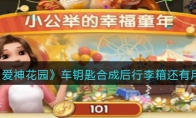 微信小程序爱神花园是一个比较枯燥的土味小游戏,很多玩家合成车钥匙后,不知道行李箱还有用没,不知道能不能卖,下面小编就给大家介绍一下,感兴趣的小伙伴们一起来看看吧。 《爱神花园》车钥