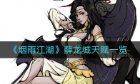 《烟雨江湖》游戏中薛龙城是新上线的伙伴,很多玩家想知道他的天赋怎么样,那么今天小编就给大家介绍一下烟雨江湖薛龙城天赋一览,有需要的小伙伴不要错过了。 《烟雨江湖》薛龙城天赋一览 1