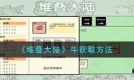在堆叠大陆游戏中很多玩家还不清楚,野生动物牛的获取方法是什么。接下来就让小编给大家带来《堆叠大陆》牛获取方法,感兴趣的小伙伴们一起来看看吧,希望可以帮助到大家。 《堆叠大陆》牛获取