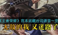 《王者荣耀》游戏中重做改版的宫本武藏已经上线了,很多玩家想知道他的台词语音是什么,那么今天小编就给大家介绍一下王者荣耀宫本武藏台词语音一览,有需要的小伙伴不要错过了。 《王者荣耀》