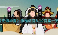 无悔华夏最近上线了全新的渔樵问答活动,很多小伙伴都很想知道渔樵问答6月10日的答案是什么,今天小编给大家带来了《无悔华夏》渔樵问答6.10答案一览。感兴趣的小伙伴一起来看看吧。 《