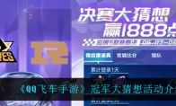 qq飞车手游即将上线冠军大猜想活动,很多小伙伴都很想知道这个活动怎么样,今天小编给大家带来了《QQ飞车手游》冠军大猜想活动介绍,感兴趣的小伙伴一起来看看吧,希望可以帮助到大家。《Q