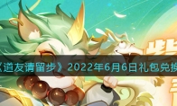《道友请留步》游戏自上线以来发送了很多礼包码,很多小伙伴想知道2022年6月6日礼包兑换码是什么,在哪里可以兑换使用呢?一起来和3DM小编看看《道友请留步》2022年6月6日礼包兑