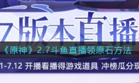 《原神》游戏中2.7版本直播活动即将在5月31日开启,很多小伙伴不知道斗鱼直播奖励怎么领取,那么今天小编就给大家介绍一下原神2.7斗鱼直播领原石方法,有需要的小伙伴不要错过了。 《
