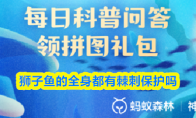 狮子鱼的全身都有棘刺保护吗?【神奇海洋】10月7日新题目已开答!正确答案现已公布,点击领取拼图,一起为修复海洋生态贡献力量!今日正确答案是:【并不是】,狮子鱼并非全身都有棘刺,它的