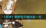 《原神》游戏中鹿野院平藏是2.6版本中的隐藏四星角色,很多玩家想知道技能怎么样,那么今天小编就给大家介绍一下原神鹿野院平藏技能一览,有需要的小伙伴不要错过了。 《原神》鹿野院平藏技
