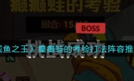 《咸鱼之王》游戏中癫癫蛙的考验比较难打,很多玩家不知道搭配什么阵容,那么今天小编就给大家介绍一下咸鱼之王癫癫蛙的考验打法阵容推荐,有需要的小伙伴不要错过了。 《咸鱼之王》癫癫蛙的考