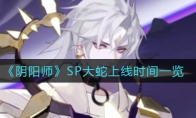 《阴阳师》SP大蛇上线时间一览《阴阳师》游戏中SP大蛇是即将登场的新角色,预计将于5月18日上线,那么今天小编就给大家介绍一下阴阳师SP大蛇上线时间一览,有需要的小伙伴不要错过了。 《阴阳师》SP大蛇上线时间一 2022-05-07 14:02:30 6137