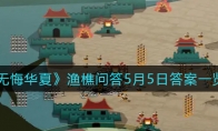 无悔华夏最近上线了全新的渔樵问答活动,很多小伙伴都很想知道渔樵问答5月5日的答案是什么,今天小编给大家带来了《无悔华夏》渔樵问答5月5日答案一览。感兴趣的小伙伴一起来看看吧。 《无