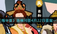 无悔华夏最近上线了全新的渔樵问答活动,很多小伙伴都很想知道渔樵问答4月22日的答案是什么,今天小编给大家带来了《无悔华夏》渔樵问答4月22日答案一览。感兴趣的小伙伴一起来看看吧。