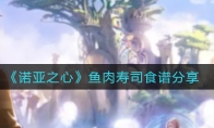《诺亚之心》游戏中鱼肉寿司是其中的一个料理,由鱼肉*2+稻谷*2制作而成,那么今天小编就给大家介绍一下诺亚之心鱼肉寿司食谱分享,有需要的小伙伴不要错过了。 《诺亚之心》鱼肉寿司食谱