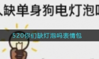 520节日就要来了,很多单身狗的小伙伴是不是还没有人陪啊?今天小编就给大家介绍一下520你们缺灯泡吗表情包,有需要的小伙伴不要错过了。 520你们缺灯泡吗表情包1、520你们缺电灯