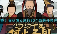 《无悔华夏》游戏中春秋演义需要玩家施行30个政策任务,很多玩家不知道怎么过,那么今天小编就给大家介绍一下无悔华夏春秋演义施行30个政策任务完成攻略,有需要的小伙伴不要错过了。 《无