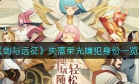 《剑与远征》游戏中失落荣光嫌犯身份就是伯爵,还有很多小伙伴不知道线索,那么今天小编就给大家介绍一下剑与远征失落荣光嫌犯身份一览,有需要的小伙伴不要错过了。 《剑与远征》失落荣光嫌犯