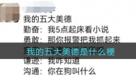 《抖音短视频》平台上因为各种有趣视频的传播给大家日常玩梗提供了素材,近期有人分享了:“我的五大美德”引起了广泛关注,纷纷跟帖。今天小编就给大家分享一下我的五大美德热梗含义出处分享,