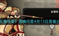 无悔华夏最近上线了全新的渔樵问答活动,很多小伙伴都很想知道渔樵问答4月13日的答案是什么,今天小编给大家带来了《无悔华夏》渔樵问答4月13日答案一览。感兴趣的小伙伴一起来看看吧。