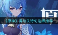 《原神》游戏中得与失诗句是月章星句第一天的任务,很多玩家不知道怎么选择诗句,那么今天小编就给大家介绍一下原神得与失诗句选择推荐,有需要的小伙伴不要错过了。 《原神》得与失诗句选择推