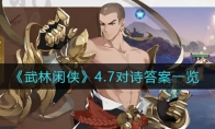 《武林闲侠》游戏中4月7日对诗答题活动一共有五道题目,很多玩家想知道正确答案是什么,那么今天小编就给大家介绍一下武林闲侠4.7对诗答案一览,有需要的小伙伴不要错过了。 《武林闲侠》