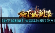 在地下城割草作是近期在抖音非常火爆的地下城冒险游戏,游戏当中大蒜阵是当前不少小伙伴都在解锁的的技能,主要是提升属性能力,很多小伙伴想知道大蒜阵怎么获得,下面3DM手游网小编就给大家