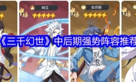 三千幻世游戏包含许多熟悉的国漫英雄,玩家可以与他们战斗,体验经典情节。 游戏中大家可以搭配各种阵容,下面是3DM小编给大家带来的《三千幻世》中后期强势阵容推荐,感兴趣的小伙伴们一起