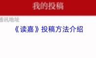点击读嘉app右下角“个人中心”按钮,在个人中心页面找到“我的投稿”栏目,进入后点击“我要投稿”按钮,接着按要求填写标题、正文内容、联系人及联系方式,确认无误后点击“确定”提交,投