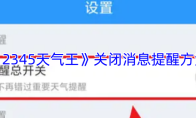 想要在2345天气王中关闭消息提醒,方式其实十分的便捷。我们可以打开2345天气王APP后点击首页右下角的【工具】,再点击右上角【设置】,进入【消息提醒】页面,关闭【消息提醒总开关