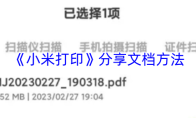 打开小米打印APP,在“我的”页面进入“我的文档”,找到要分享的文档并点击右侧三个点图标,选择分享方式(如微信、QQ等),按提示完成分享操作;也可在文档预览界面点击分享按钮,选择分
