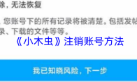 打开小木虫APP,点击右下角「我的」进入个人中心,点击右上角齿轮图标进入「设置」,选择「账号注销」,阅读风险提示后点击「我已知晓,下一步」,选择注销原因并确认注销,即可完成账号注销