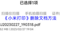 打开小米打印app,在“我的”页面点击“我的文档”,进入扫描文档页后点击编辑图标,选择要删除的文档后点击“删除”;若要取消打印任务,可在打印机面板上长按无线连接键和取消任务键至电源