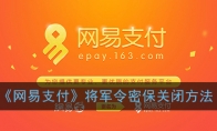 有的小伙伴在网易支付中设置开启了将军令密保,每次支付等都需要输入密保。那么如果我们想要关闭将军令该怎么弄呢?下面小编就来为大家介绍一下具体的设置方法。 网易支付怎么关闭将军令?1、