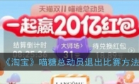 在参与淘宝喵糖总动员活动的时候,比赛过程中有的小伙伴想要退出,但是不知道该怎么弄。喵糖总动员怎么退出比赛?下面小编就来为大家介绍一下淘宝喵糖总动员退出比赛的方法。 喵糖总动员怎么退