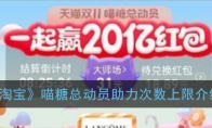 在淘宝喵糖总动员邀请好友进行助力是有次数限制的,如果超过邀请次数就无法再进行助力了。那么喵糖一天可以助力几次呢?下面小编就来为大家介绍一下喵糖总动员助力次数的上限。 喵糖一天可以助