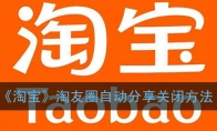 淘宝淘友圈的自动分享功能是默认开启的,会自动将我们购买的商品分享到淘友圈中,别的好友都可以看到。那么淘宝淘友圈自动分享怎么取消?淘友圈怎么关闭自动分享?下面小编就来为大家介绍一下。