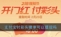 很多小伙伴参与支付宝讨彩头活动,购买基金后就可以领取到讨彩头的红包奖励。那么支付宝讨彩头是现金吗?支付宝讨彩头能否提现呢?下面小编就为大家带来了详细的解答,我们一起来了解下吧! 支