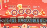 2021抖音春节期间推出了许多的活动,参与活动就能获得现金红包奖励!其中有一个头号答人的答题,这个活动不少小伙伴都在玩。下面小编就为大家整理带来了2021抖音头号答人答题答案大全,