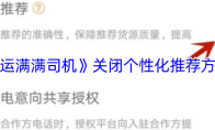 运满满司机若想关闭个性化推荐,可先打开运满满司机版APP,点击界面右下方“我的”,进入后选择“设置”按钮,接着点击“隐私”并进入“隐私设置”,最后找到并点击关闭个性化推荐按钮即可。