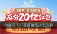 2020淘宝天猫双11超级星秀猫组队pk玩法正式开启,参与组队活动,获胜后就可以领取队伍红包,与队伍中的队友一起瓜分哦!那么淘宝双十一养猫组队pk怎么赢呢?这里小编为大家带来了20