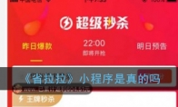 最近很多小伙伴在微信中看到了省拉拉这个小程序,这是一个团购平台,里面卖的东西都非常便宜,几块钱就可以买东西。微信小程序省拉拉是真的吗?省拉拉小程序组团靠谱吗?这是很多小伙伴都比较关