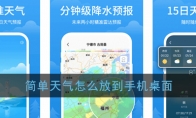 天气预报软件放到手机桌面上,查看起来更加方便,很多小伙伴都会这样做。那么简单天气怎么放到手机桌面呢?下面小编就来为大家介绍一下简单天气添加到手机桌面的方法教程,还不知道的小伙伴可以