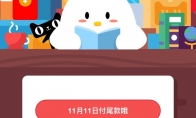 在天猫双11预售中付了一套衣服的定金,我要在什么时候付款呀?支付宝蚂蚁庄园小课堂11月1日的题目更新了,今天的题目为:在天猫双11预售中付了一套衣服的定金,主人主人,我要在什么时候付款呀?下面我们就来看看这道题目的正确答案吧! 【庄园小课堂 2018-11-01 09:03:49 4916