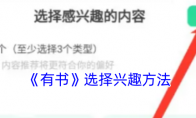 打开有书APP,进入“我的”界面后点击“兴趣”图标,接着选择性别和年代,点击“下一步”,然后从提供的选项中选择自己感兴趣的内容,最后点击“完成”按钮即可成功设置兴趣。这样,有书AP