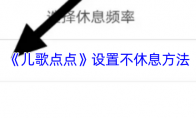 用户只需进入儿歌点点APP首页,点击右下角的“家长中心”图标,进入家长中心界面后,找到并点击“每次播放时长”选项,然后从弹出的选择框中勾选“不休息”选项并保存设置即可。这样设置后,