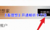 用户想要在看理想APP中开通畅听卡时,只需打开APP并进入会员页面,点击“立即开通”或“开通畅听卡”选项,选择合适的开通时长,并按照提示完成支付操作。支付成功后,畅听卡即可立即生效