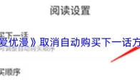 打开爱优漫APP后点击右下角“我的”进入个人中心,点击右上角“展开符”进入侧边菜单,选择“设置”中的“阅读设置”,找到“自动购买下一话”选项并将按钮滑动至关闭状态(按钮颜色变灰),